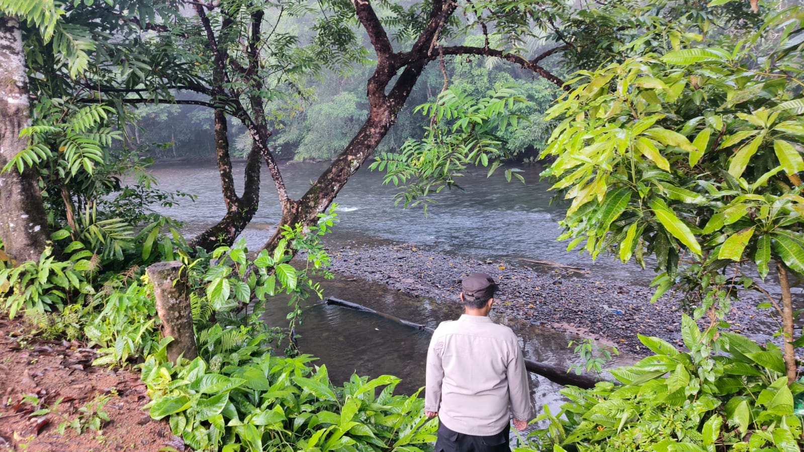 Lamandau – Polsek Delang, Piket Polsek Delang melakukan kegiatan rutin pengecekan debit air DAS Delang di TMA Kelurahan Kudangan RT.02 Kecamatan Delang, Rabu (11/3/26) Pagi