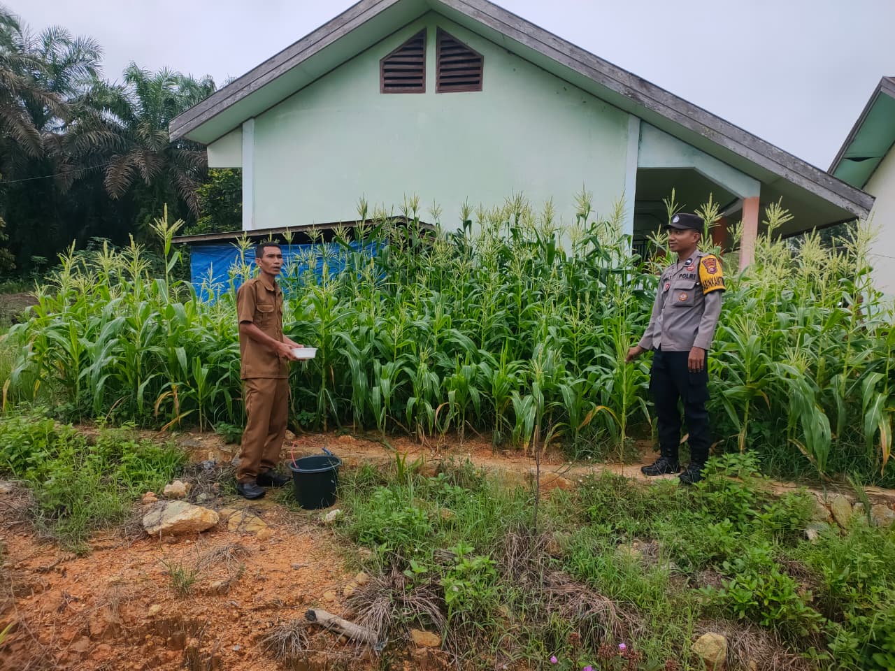Kegiatan tersebut dilaksanakan di SMPN Satu Atap Desa Mekar Mulya dengan memanfaatkan lahan pekarangan untuk penanaman jagung manis sebagai bentuk pemanfaatan lahan produktif.