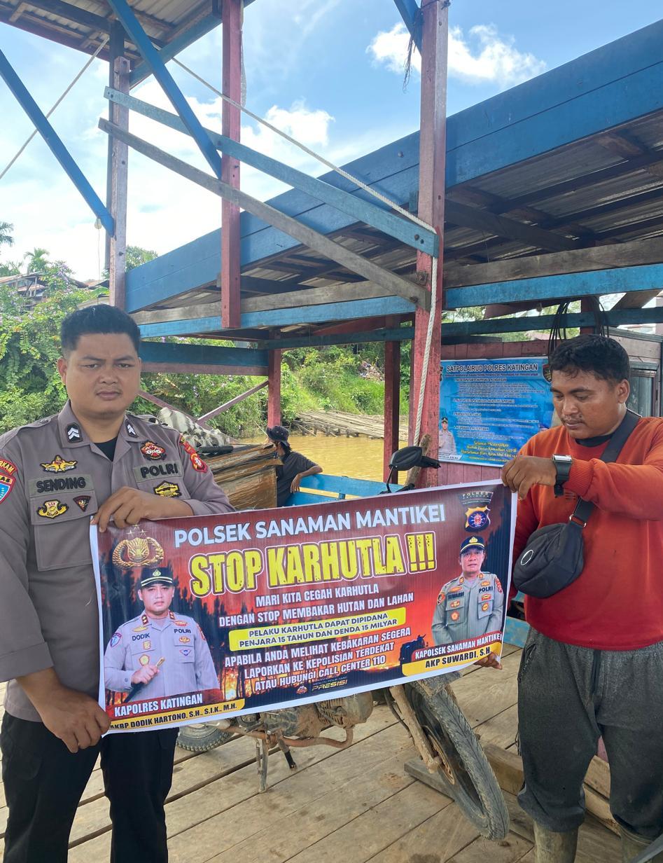 Kapolres Katingan AKBP DODIK HARTONO, S.H., S.I.K., M.H. melalui Kapolsek S. Mantikei AKP SUWARDI, .S.H., menjelaskan kegiatan Bhabinkamtibmas jajaran Polres Katingan dengan cara sosialisasi kepada masyarakat agar mengerti dan memahami maklumat kapolda kalteng tentang larangan karhutla serta mengerti sanksi dan denda akibat pembakaran tersebut.