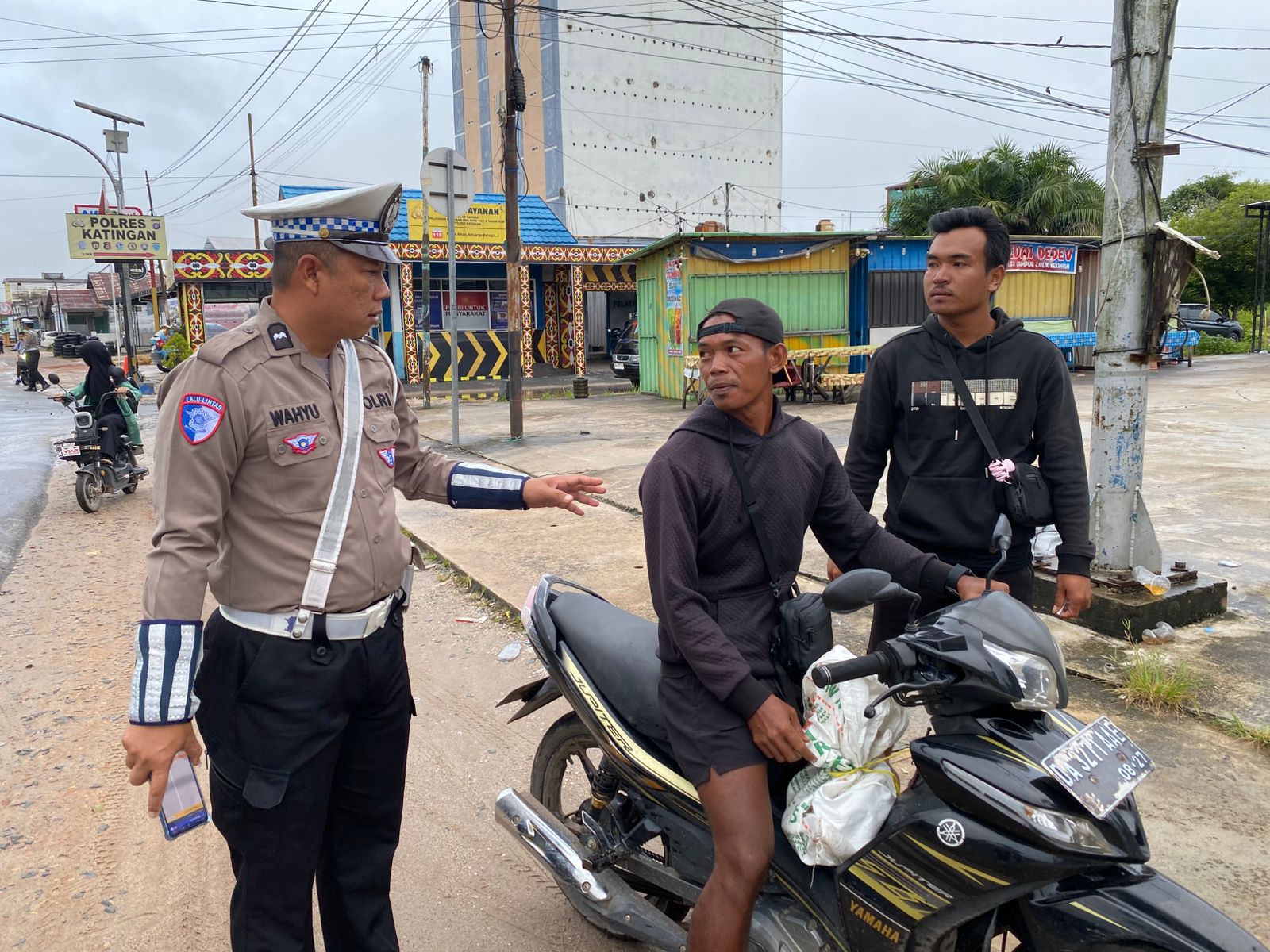 Polres Katingan – Personel Satlantas Polres Katingan melaksanakan kegiatan peneguran kepada Pengguna Jalan yang Tidak Menggunakan Helm.