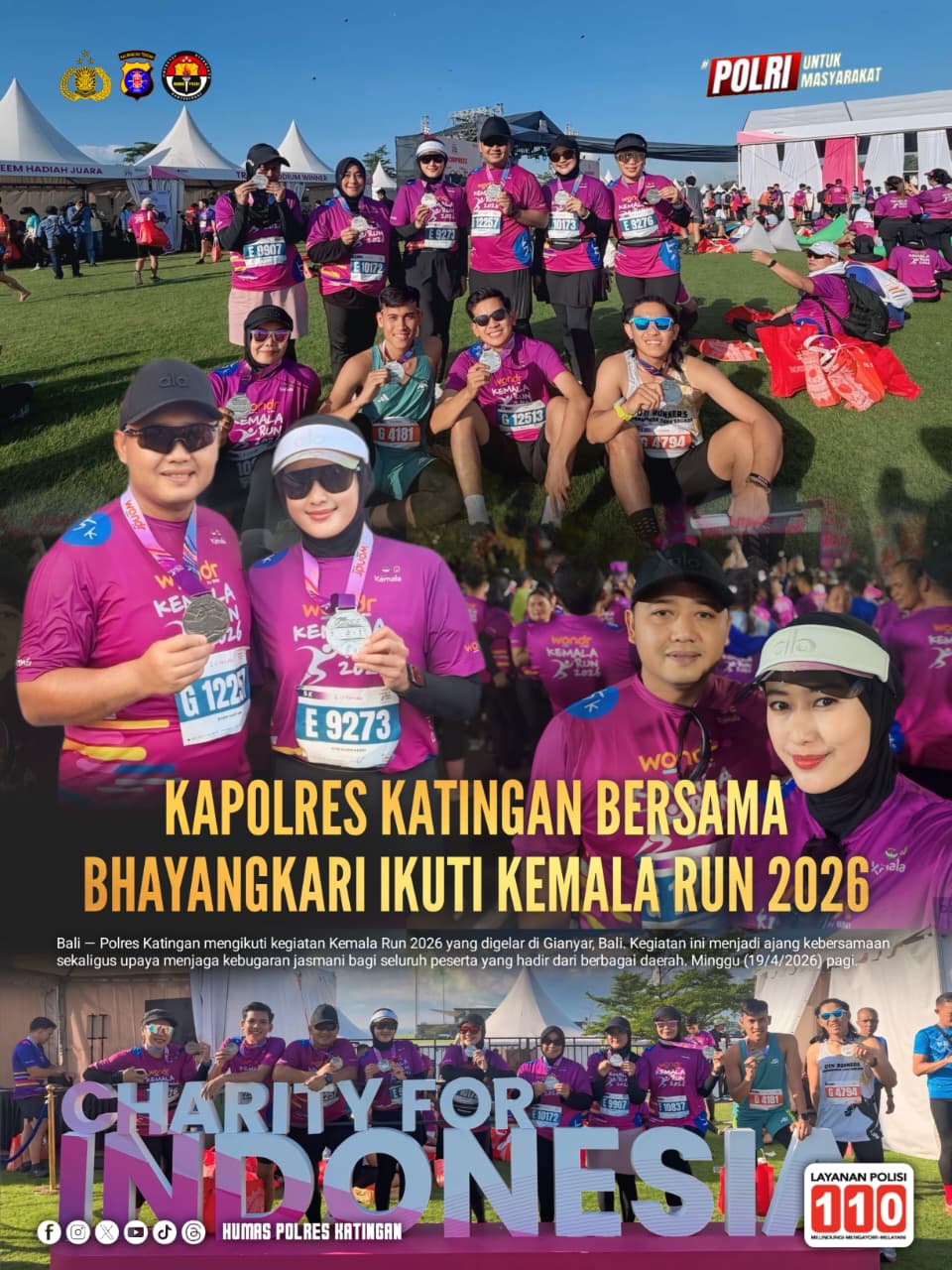 Bali — Polres Katingan mengikuti kegiatan Kemala Run 2026 yang digelar di Gianyar, Bali. Kegiatan ini menjadi ajang kebersamaan sekaligus upaya menjaga kebugaran jasmani bagi seluruh peserta yang hadir dari berbagai daerah. Minggu (19/4/2026) pagi.