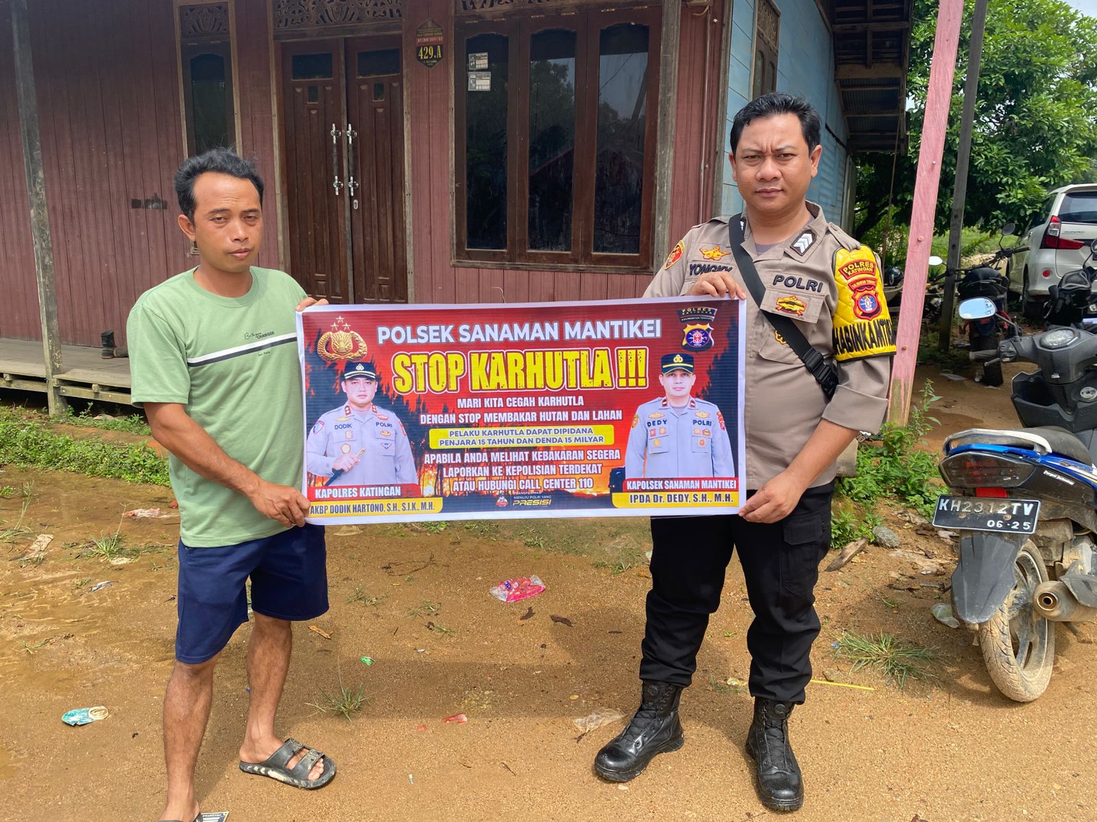 Kapolres Katingan AKBP DODIK HARTONO, S.H., S.I.K., M.H. melalui PS Kapolsek Sanaman Mantikei IPDA Dr. DEDY., S.H., M.H. menjelaskan kegiatan Bhabinkamtibmas jajaran Polres Katingan dengan cara sosialisasi kepada masyarakat agar mengerti dan memahami maklumat kapolda kalteng tentang larangan karhutla serta mengerti sanksi dan denda akibat pembakaran tersebut.