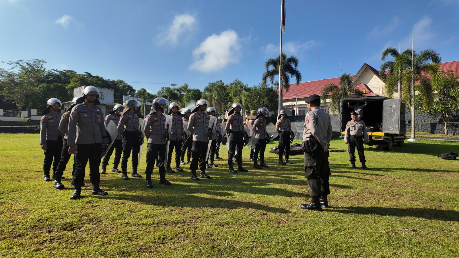 Latihan yang berlangsung pada pagi hari tersebut diikuti oleh puluhan personel dengan penuh semangat dan disiplin. Kegiatan ini dipimpin langsung oleh perwira pengendali, dengan materi meliputi formasi Dalmas awal hingga Dalmas lanjutan, teknik pengamanan aksi unjuk rasa, serta simulasi penanganan situasi kontinjensi.