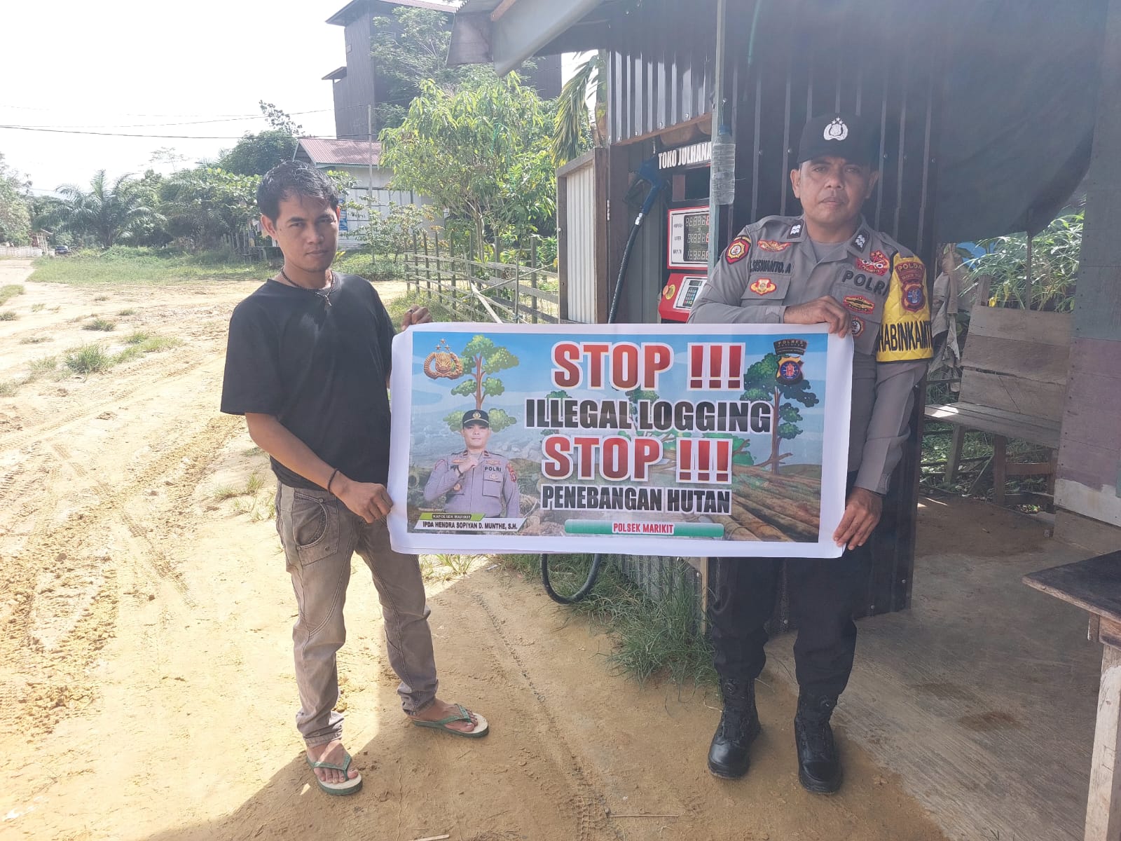 “Selanjutnya Kapolsek marikit menyampaikan dengan adanya Kegiatan Sosialisasi ini Masyarakat menyadari Bahaya, Dampak dan sanksi Hukum apabila melakukan aktivitas Ilegal Logging dan Penebangan Hutan secara liar tanpa dilengkapi surat dukomen yang sah”