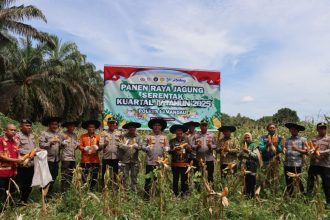 Kapolres Lamandau Ikuti Zoom Gugus Tugas Swasembada Pangan Mabes Polri dan Panen Jagung di Desa Tri Tunggal