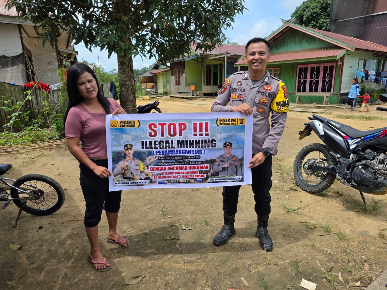Polda Kalteng – Polres Katingan – Personel Bhabinkamtibmas Polsek Katingan Hulu dan Bukit raya Brigpol Dony Apriady Saputra melaksanakan sosialisasi tentang larangan terhadap pelaku Ilegal Mining kepada masyarakat di Desa Tumbang Jiga, selasa (13/1/2026)pagi.