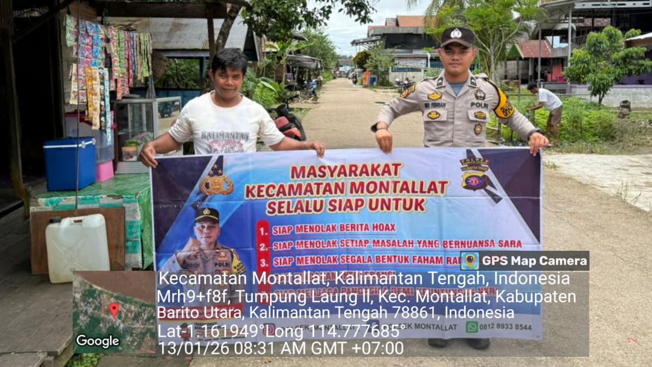 **Tribratanews.kalteng.polri.go.id – Polres Barito Utara –** Polsek Montallat menggelar sosialisasi tentang bahaya hoax (berita bohong) dan dampak negatifnya bagi masyarakat. Kapolres Barito Utara, AKBP Singgih Febiyanto, S.H., S.I.K., melalui Kapolsek Montallat, IPDA RADEN KOMARUDIN HIDAYATULLOH S.H., menekankan pentingnya keterampilan masyarakat dalam memilah informasi agar tidak terjerumus dalam penyebaran hoax yang dapat merusak persatuan dan kesatuan.