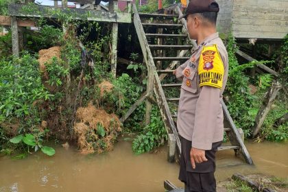Polres Katingan – Mendeteksi potensi bencana banjir, Bhabinkamtibmas Polsek Katingan Hulu dan Bukit Raya, Polres Katingan, Polda Kalteng Aipda Denny Ariadi melakukan pemantauan debit air ...